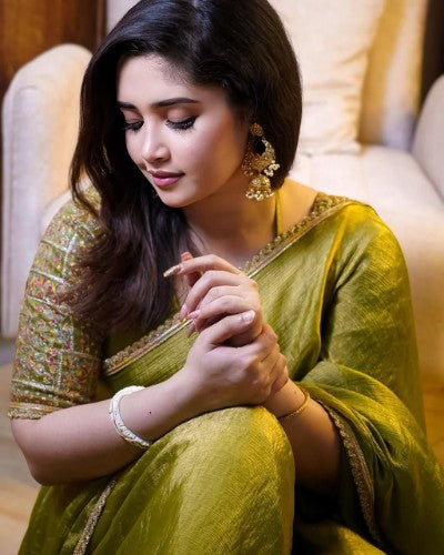Fendy Satin Lace Saree with Unstitched/Stitched Blouse