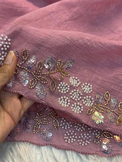 Pink Sequined Georgette Saree