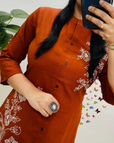Stylish Flower Embroidery Print Long Sleeve Co-Ord Set