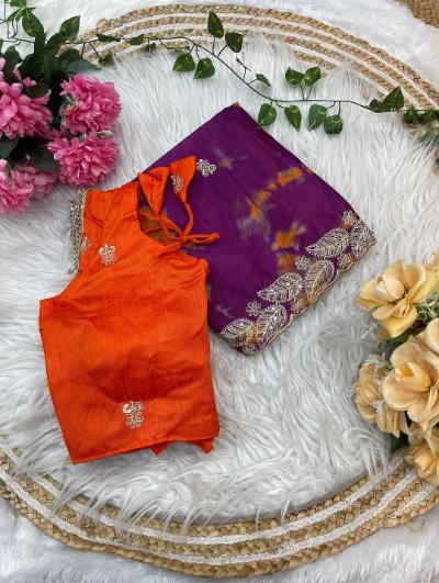 Chinnon Prism Dyble Fabric Embroidery Saree with Stitched Blouse