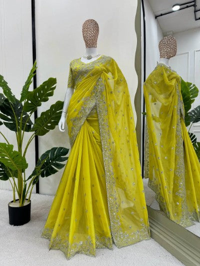 Designer Tibby Silk Saree with Thread & Sequence Work
