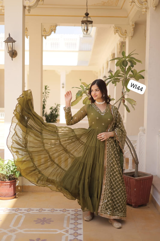 Elegant Festive Wear Embroidered Gown with Designer Dupatta