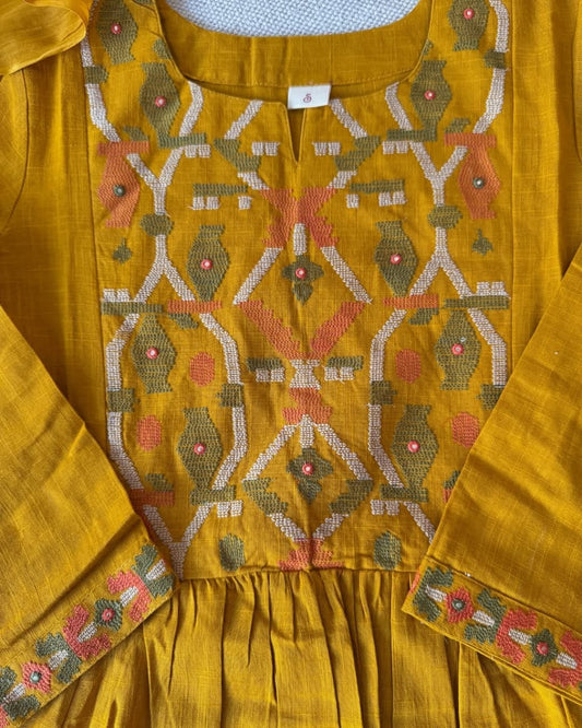 Elegant Kashmiri Embroidered Cotton Kurti Set