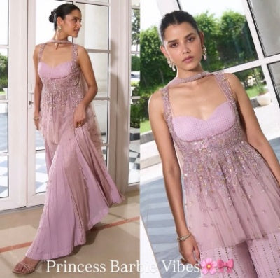 Organza Silk Digital Floral Printed Sequins Work Suit