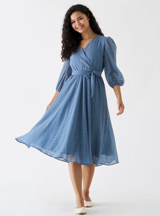 Festival Special Georgette Midi Dress with Zigzag Pattern