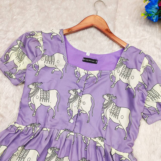 Elegant Lavender Cow Print Cotton Dress