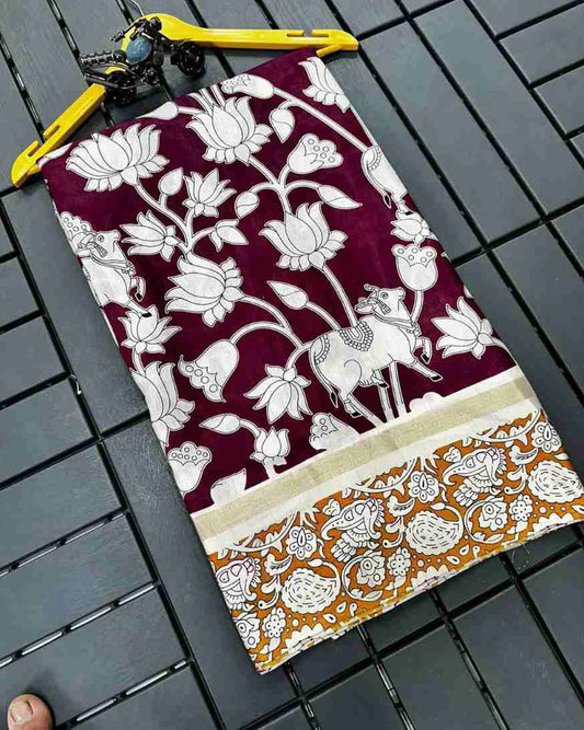 Soft Printed Saree with Zari Border
