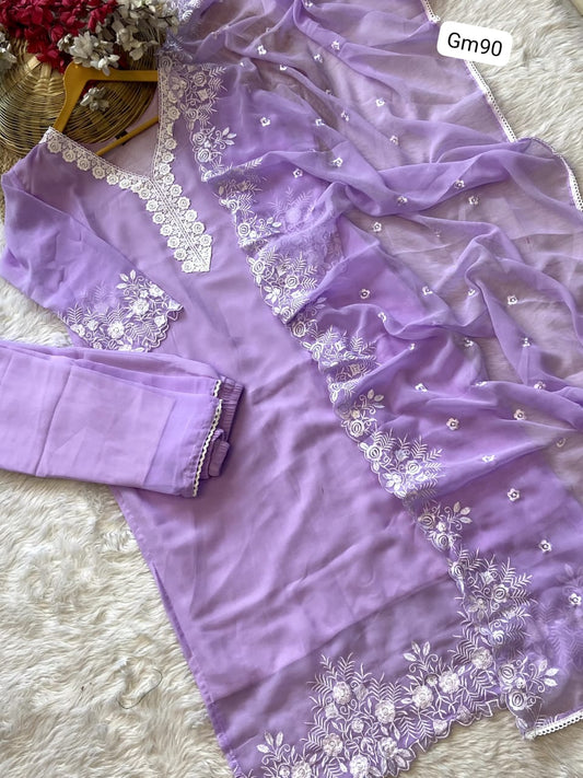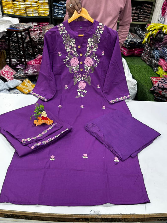 Elegant Lavender Embroidered Kurti Set